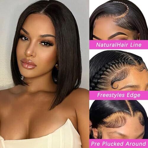 Brazilian Human Hair Straight Bob Wig with 13X4 Lace Front, 100% Unprocessed