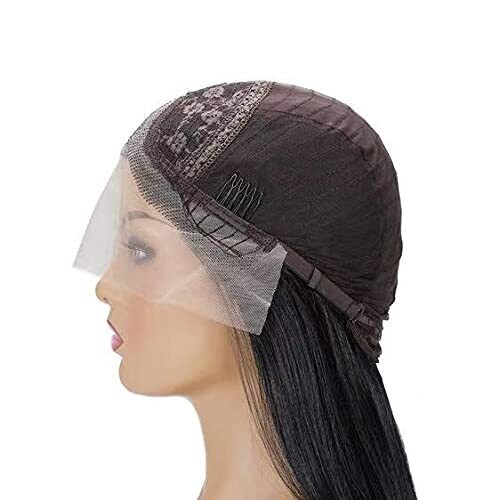 Coffee black brown blend front lace wig; 26 inches long, straight style; 130% natural human hair density; 100% hand-made, glue-less lace front wig; medium cap size 22-22.5 inches with adjustable straps; transparent Swiss lace; lace base size 13x3 inches with front lace 3 inches; includes 3 combs; heat styling compatible up to 260-280 Fahrenheit; suitable for daily wear and special occasions.