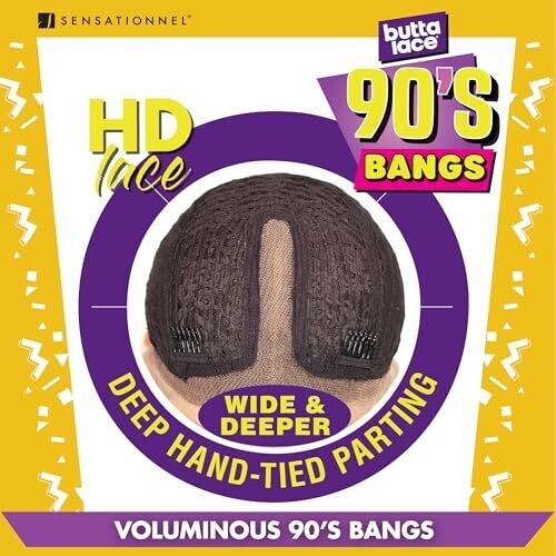 Sensationnel Butta Lace 90Sbangs Glueless Wig Deep Part Hairline 1B off Black