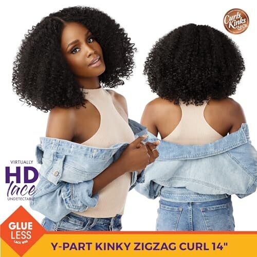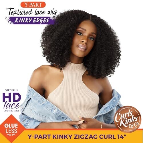 Sensationnel Kinksandco Kinkyedges Wavy Zig Zag Wig 14 Inch Y Part Lace (1 X Jetblack)