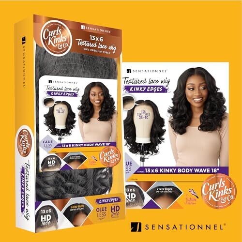 Experience the Sensationnel Kinky Edge 13x6 lace wig in an 18-inch length for a bold, natural look. Glueless wear with an elastic band; HD lace front delivers a seamless hairline in jet-black, with versatile textures and color options.
