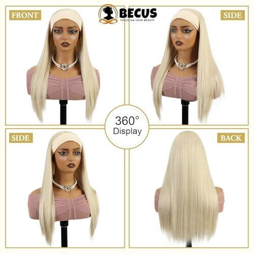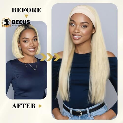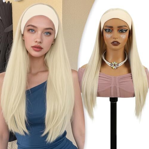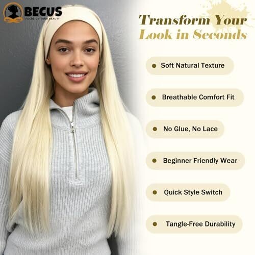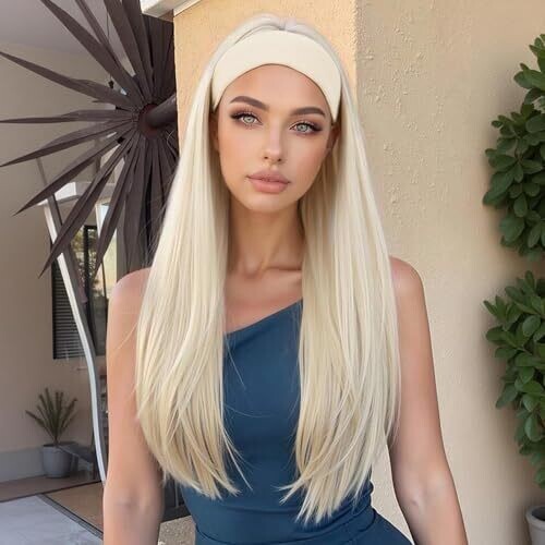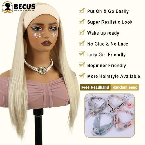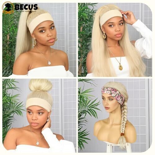 BECUS Platinum Blonde 22-Inch Straight Headband Wig for Black Women, Natural Hairline, Glueless (22