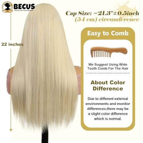 - 22-inch platinum blonde straight style for a sleek, on-trend look
