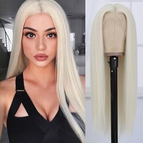 Experience a natural-looking platinum blonde lace-front wig with a 13x3 parting area. Glueless, lightweight cap ensures comfortable all-day wear, while the pre-styled straight hair and heat-resistant fibers provide versatile styling and a polished look for any occasion.