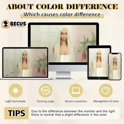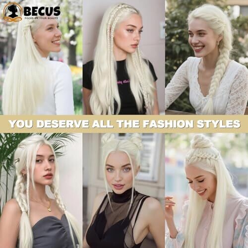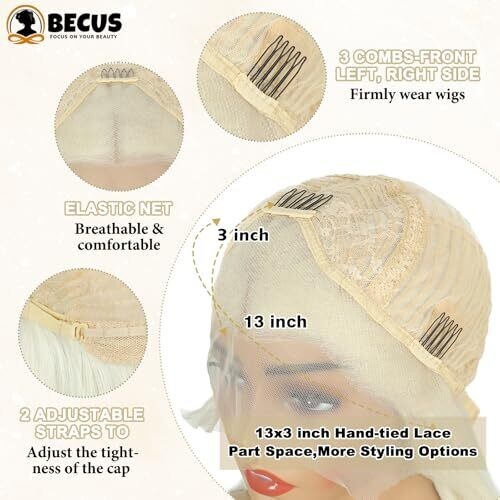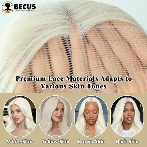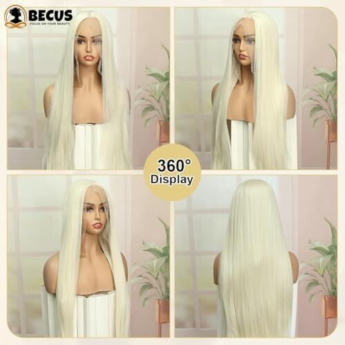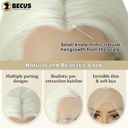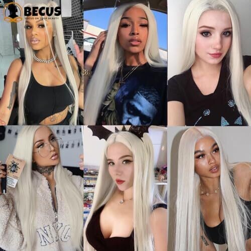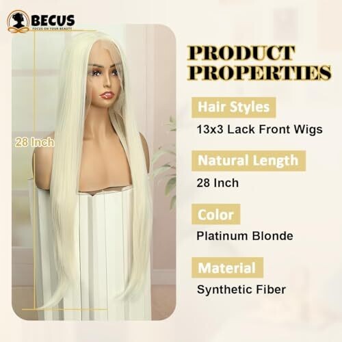 • BECUS Platinum Blonde Lace Front Wig 13X3 Glueless Synthetic Straight Fiber