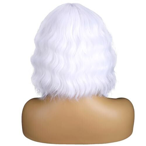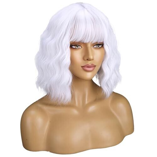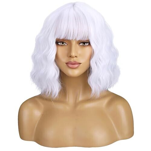 Beron 14'' Women's Bob Curly Wig with Bangs for Cosplay and Daily Wear (White)