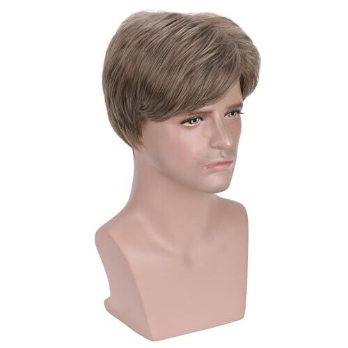 Beron Men Wigs Short Straight Mix Ash Blonde Synthetic Wigs with Wig Cap (Mix Ash Blonde)