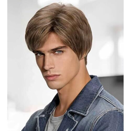 - Transform your look with BERON Men Wigs in a short straight style, blending natural ash blonde tones for a modern, confident vibe.