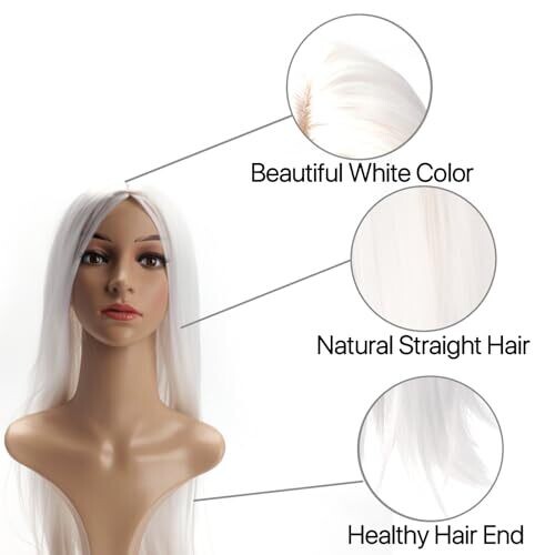 Berrylion Straight Wig (White) Synthetic Long Wigs for Women Cosplay Wig 28Inch