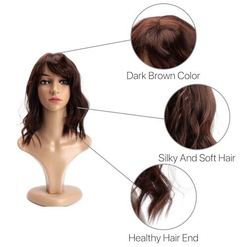 • Berrylion Wigs for Women Bob Wig with Bangs Wavy Bob with Air Bangs (Brown)