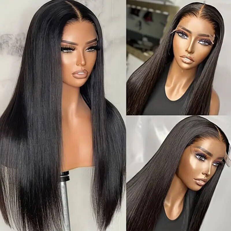 Glueless Lace Front Wig 26 Inch Straight Black Wigs 13X5X1 Hd Lace
