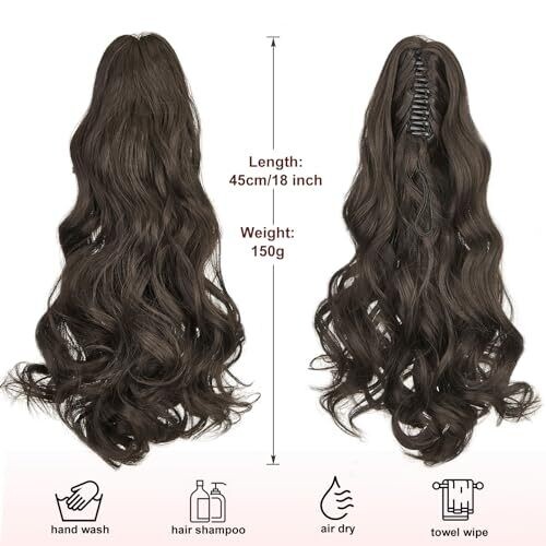 Achieve instant length and voluminous waves with an 18-inch, natural-looking ponytail. Quick clip-in design requires no glue or tape, lightweight fibers heat-friendly for styling, and easy care for daily wear, parties, cosplay, or performances.