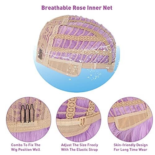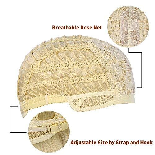 • Two adjustable straps on each side allow you to intertwine and secure the wig to fit different head sizes.