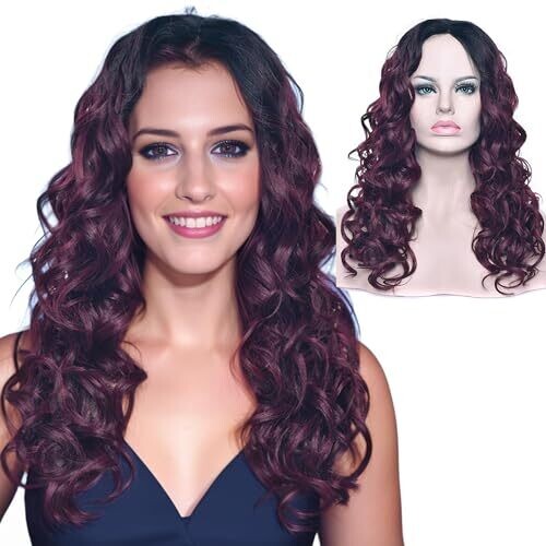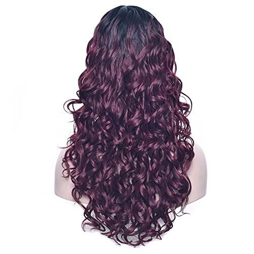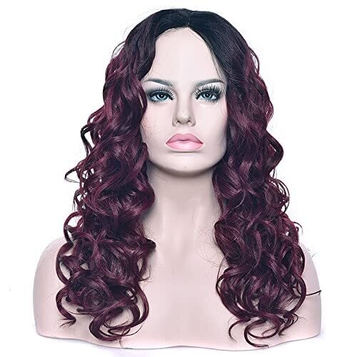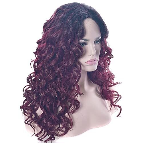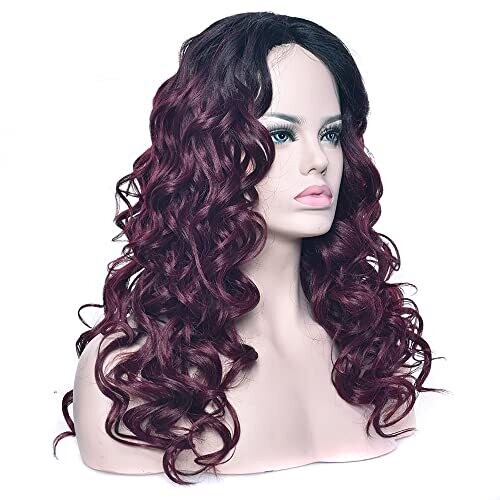 Imissu 22 Inches Long Curly Ombre Color Cosplay Wig for Women (Black Burgundy)