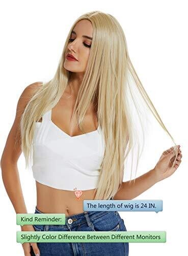 • Jiasly Fashion Blonde Wig for Women Synthetic Hair Long Straight 60cm Free Wig Cap (Blonde)