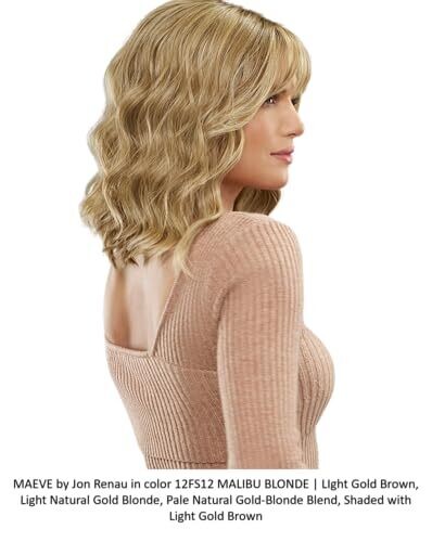 Maeve Lace Front Heat Friendly wig with beachy waves for an effortless, chic look. Mid-length style with bangs for versatile everyday wear. SmartLace front extends to ear tabs for a natural hairline and comfortable center-part.