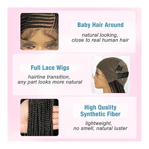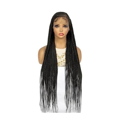 Knotless Box Braid Wigs 34 Inch, 360 Full Lace Braided Wig for Black Women, Synthetic Black Braided Wig