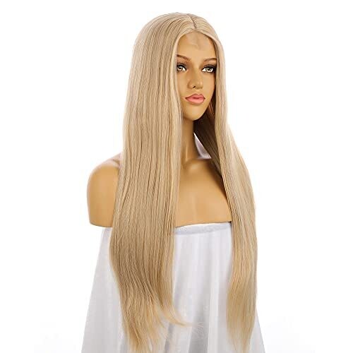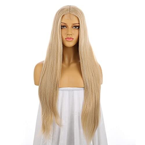 • Mixed Blonde Lace Wig 13-4-3 Synthetic Hair, 26 Inch Silky Straight