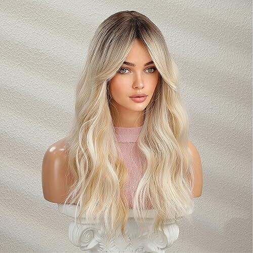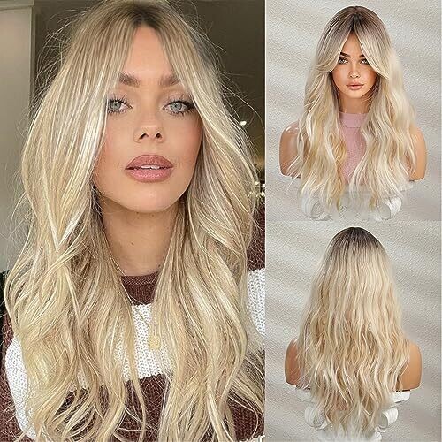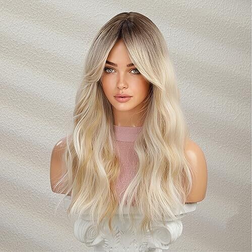 Elevate your look with a long ombre blonde wavy wig for daily wear or parties. 24-inch waves provide fullness, with a hand-tied lace part for a seamless finish and a breathable cap for all-day comfort.