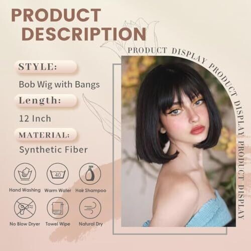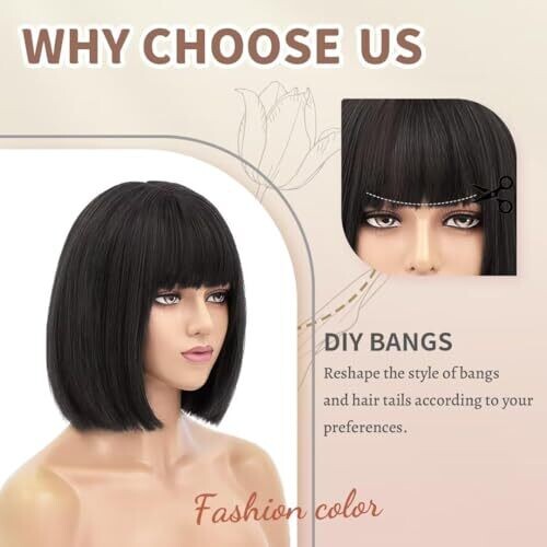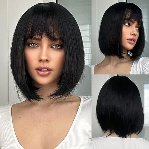 • QAUARUMSUN Black Bob Wig for Women delivers a chic 12-inch short bob with bangs for daily wear, cosplay, or party looks.