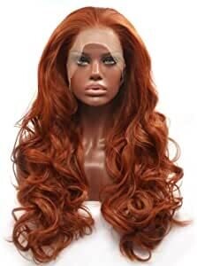 Experience a bold copper red style with long natural-looking waves. Glueless lace front provides secure, comfortable wear with half hand-tied lace and 2.5 inches of parting space. Heat resistant fibers handle styling up to 160°C.