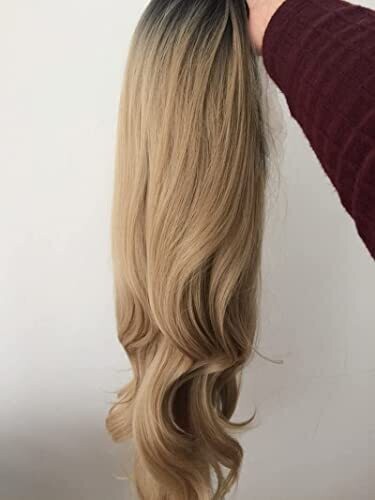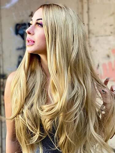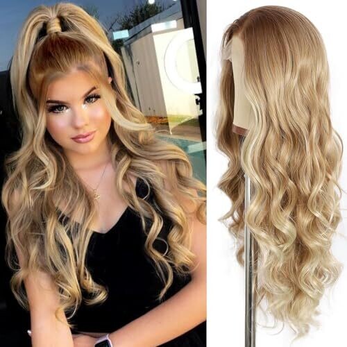 Xiweiya Long Blonde Synthetic Lace Wig Wavy Side Part 20 & 24 Inch (24\