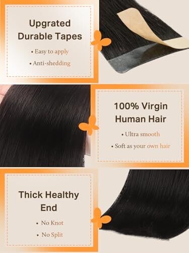 Experience natural-looking length with 100% Remy human hair that blends seamlessly. Easy to apply with a comfortable tape-in system. Durable, tangle-free, and washable; style with heat tools. Wide color range and color-matching service for a perfect blend.