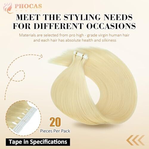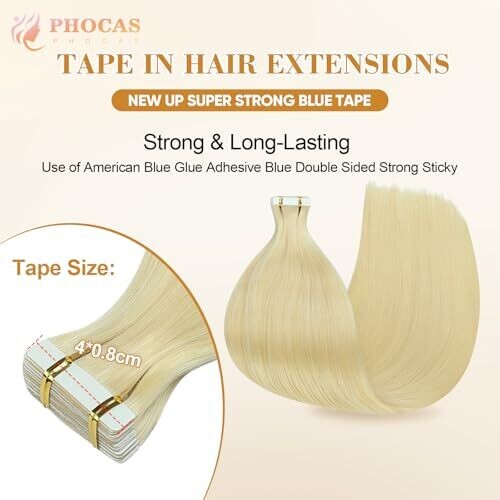 • Phocas Tape In Hair Extensions Platinum Blonde 18In 50G 20pcs Doublesided Tape