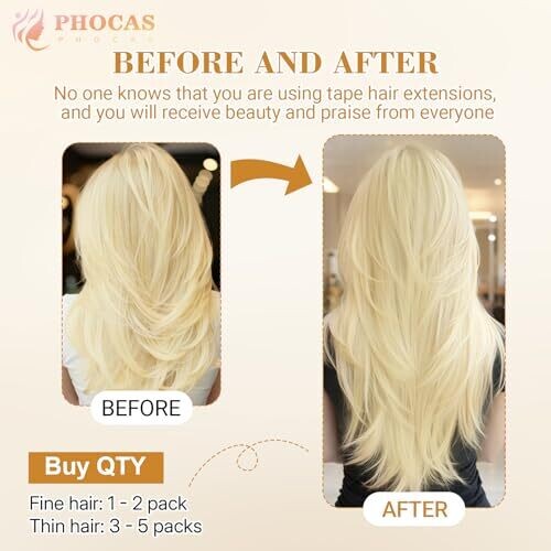 Designed for adding thickness and length; most customers use 2–3 packs for a full head depending on hair thickness. Can be styled by straightening, curling, and toning like natural hair; extensions can be reused with proper tape replacement. Platinum blonde shade intended to blend with bleached or cool blonde hair; slight variation may occur due to lighting or screen settings.