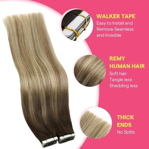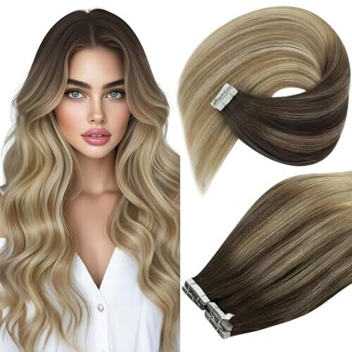 Ve Sunny tape-in hair extensions use 100% real human hair for a seamless balayage blend from dark brown to platinum blonde. Lightweight, comfortable tape-in design provides natural shine and lasting hold with 20 pieces (50g) for versatile styling.