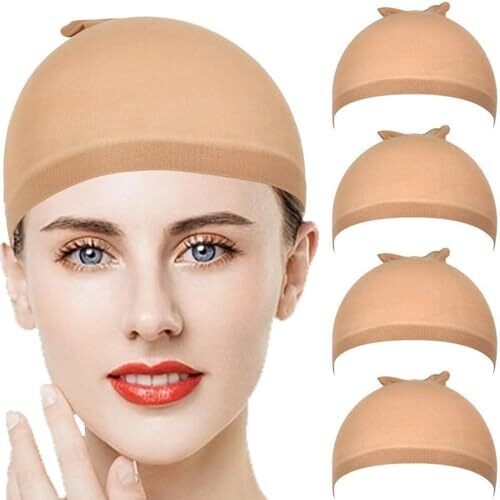 • 4 pcs Stretchable Wig Caps Breathable Nylon Stocking Non-Slip Hair Net for Secure Wig Wear
