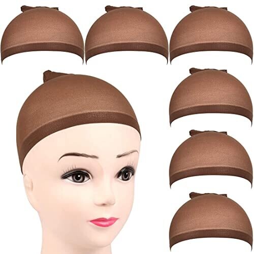 • 6pcs Brown Stocking Wig Caps Stretchy Nylon Close-End Caps for Women and Men