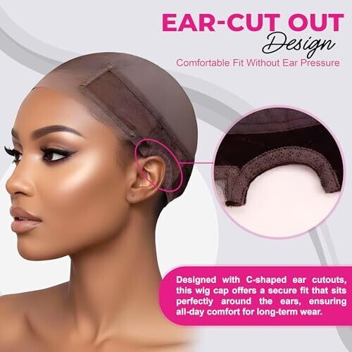 • Ear-cutout design reduces friction; virtually invisible under the wig