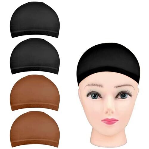Reayou 4 Pack Stocking Wig Caps, Nude Nylon Caps for Wigs, Stretchy Caps (Black+Brown)