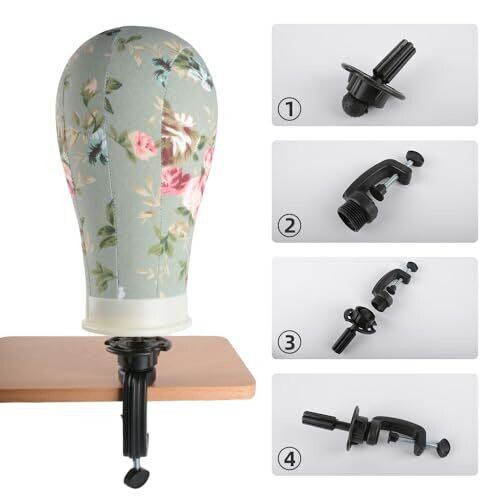 Professional canvas block head for wig styling and display. Durable polyurethane supports pins and styling tools, ideal for cutting, dyeing, and shaping while protecting wig integrity. Secure setup with compatible stands and tripods for versatile practice or display.