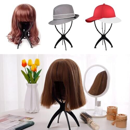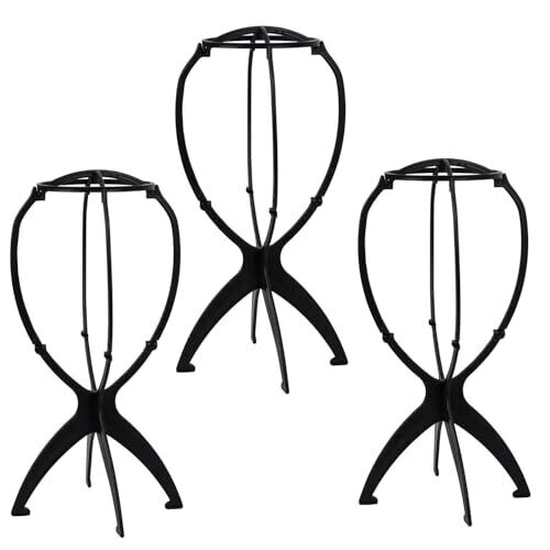 Walwal 3 pcs Portable Wig Stand, Lightweight Collapsible Wig Holder, Travel-Friendly (Black)