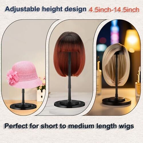- Adjustable height from 4.5" to 14.5" to fit bob cuts, shoulder-length styles, and stage wigs.