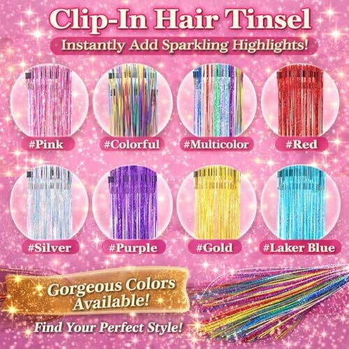 • 12 pcs Hair Tinsel Set Clip In Hair Extensions for Girls 22 Inch Glitter Heat Resistant Accessories for Party