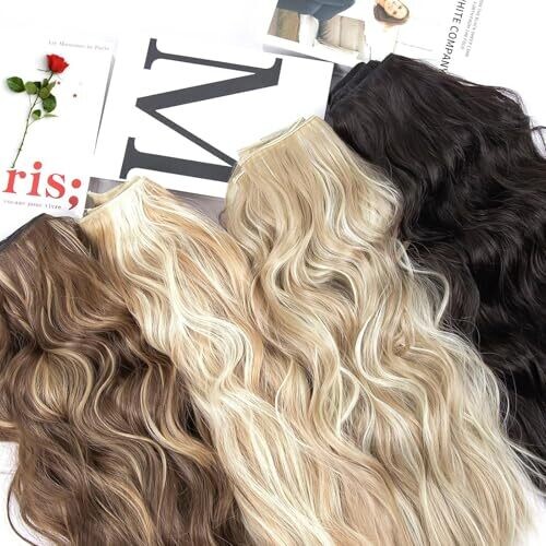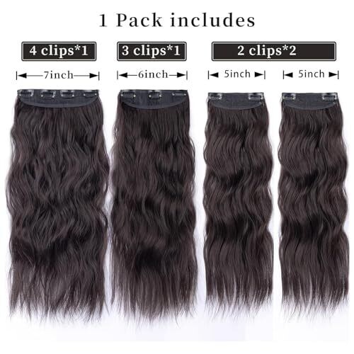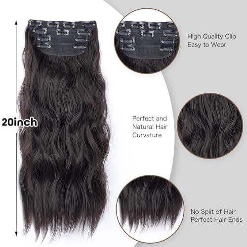 • 20 Inches Clip-In Hair Extensions, 4pcs Synthetic Curly Extensions, Thick Wavy Hairpieces