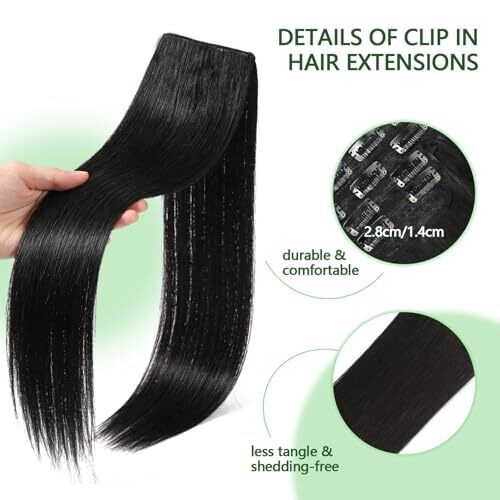 • 22-Inch Black Straight Hair Extensions Women’s Full Head Clip-In – Natural Volume & Invisible Clip-Ins