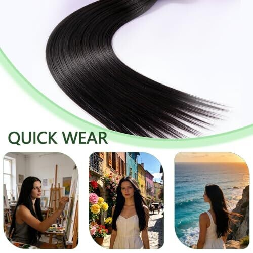 • Transform your look with a full head of silky black extensions for instant length and volume.
