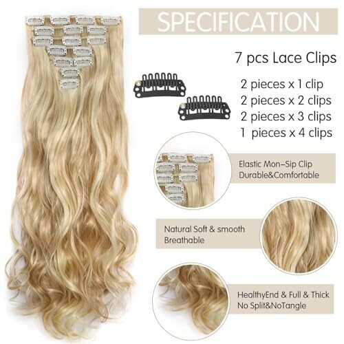Full 7-piece clip-in set provides natural volume and seamless blending with your own hair. Easy BB-clip application, about 22 inches long. Soft, smooth synthetic fibers mimic real hair and can be cut, permed, and washed for versatile, comfortable daily wear.