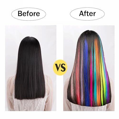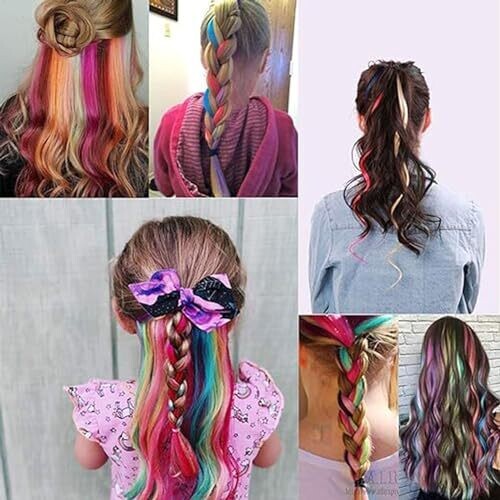 Vibrant rainbow palette to instantly elevate any look. 28-piece, 22-inch clip-in extensions for bold color accents with easy, secure snaps. Perfect for cosplay, parties, and festive hair styling with heat-friendly synthetic fibers.