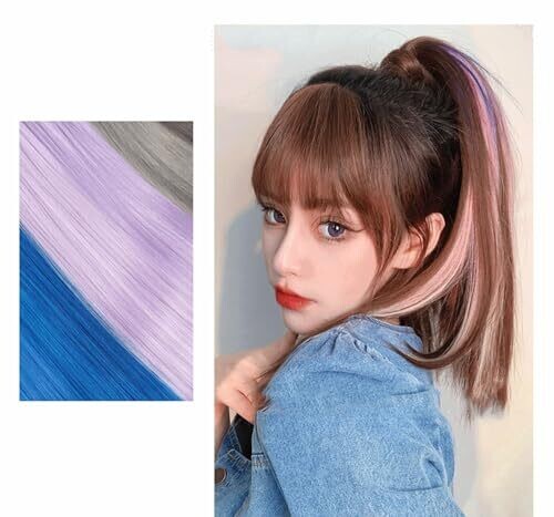 • 28 pcs Colored Hair Extensions, Clip-In Hair Extensions Rainbow Party Highlights Multi-Color for Cosplay Dress Up