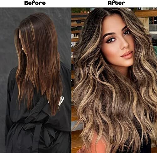 Experience a seamless balayage blend from chocolate brown to caramel blonde with 4pcs clip-in extensions. The 20-inch, long, wavy style adds effortless glamour and movement, while the clip-in design delivers quick, salon-like fullness at home.