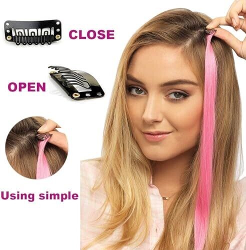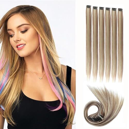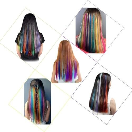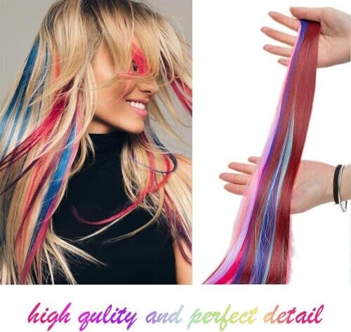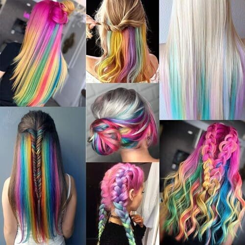 - Instant color and style with 6-piece clip-in extensions in vibrant rainbow neon highlights.