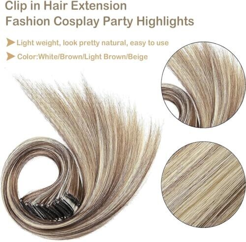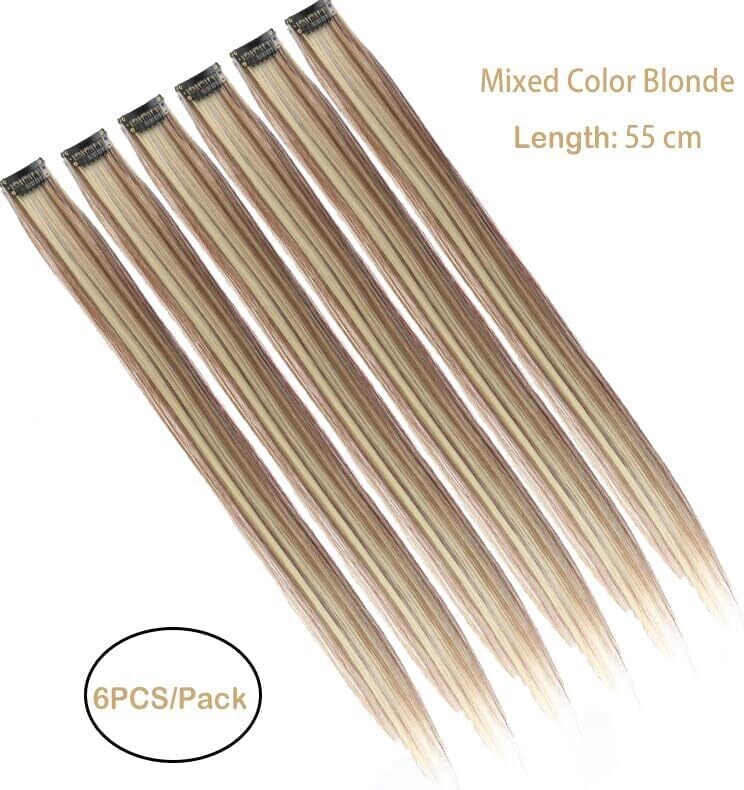 6 pcs Brown Mix Blonde Hair Extensions Clip In for Women 20 Inch Neon Rainbow