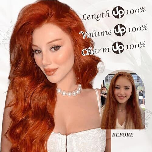 • 50 cm long wavy copper hair extensions in the Ginger Copper shade for a natural, vivid look