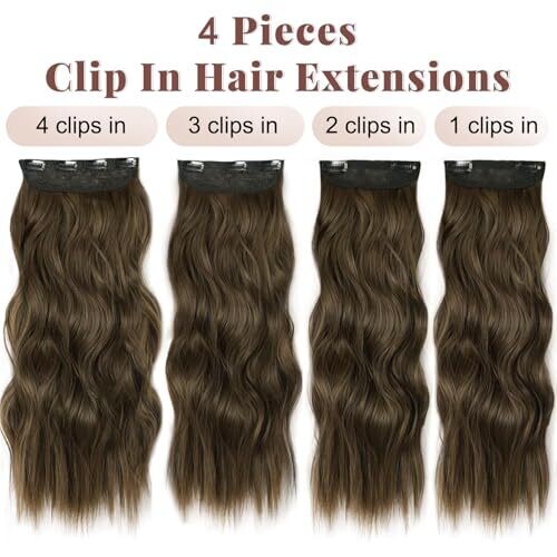 • Clip In Hair Extensions, 24 Long, 4pcs, Wavy Synthetic Curly Clip Ins Weft (Light Brown)