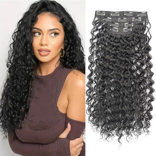 Clip-In Hair Extensions, 4-Piece High-Temperature Silk, 20-Inch Curly Hair Extension for Ladies